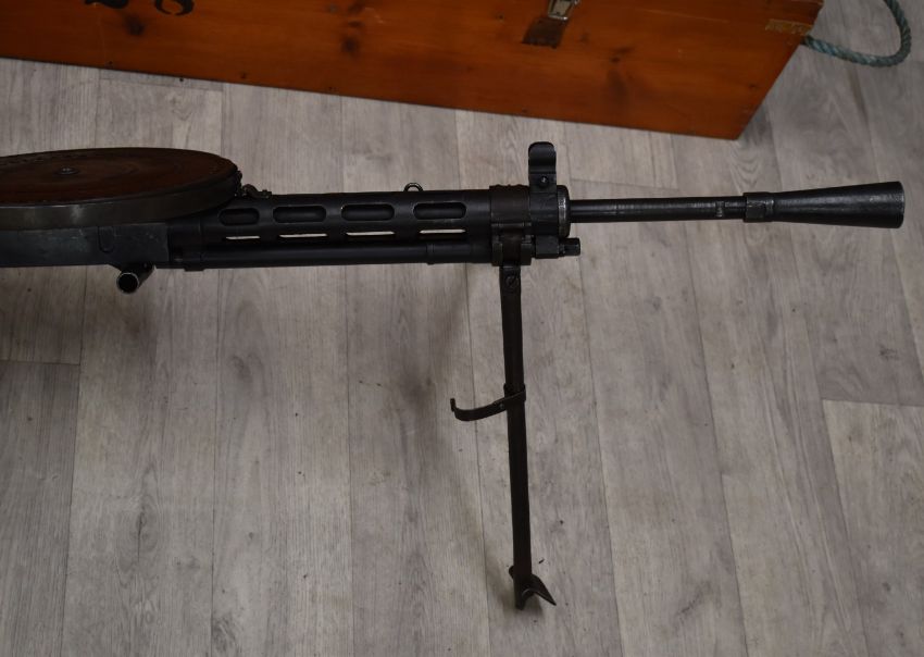 Deactivated Russian Degtyarev 7.62mm light machine gun with drum magazine, stock impressed 'RZ 307', top flat impressed '1934', bi-pod and adjustable sights, serial number KN357, in fitted wooden box marked 'DP 28', with deactivation certificate dated 12/08/21.