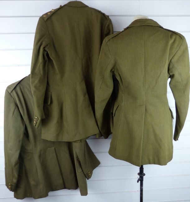 Three British Army Royal Gloucestershire Hussars officer's No 2 dress khaki tunics with medal ribbon and regimental buttons. Consigned for sale by the Trustees of the Royal Gloucestershire Hussars Trust