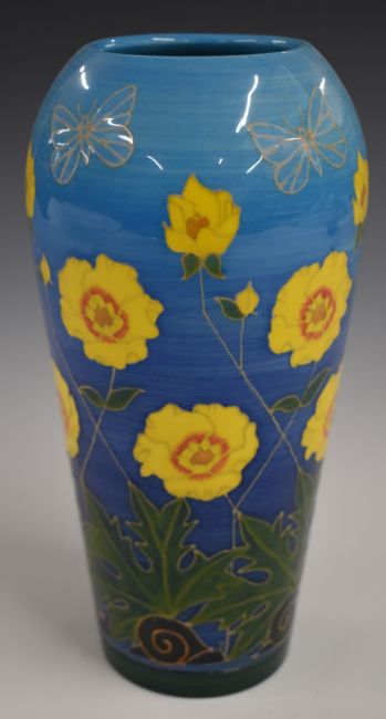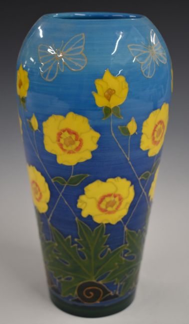Dennis Chinaworks limited edition no 1 vase decorated in the sunflower and snail pattern with Sally Tuffin monogram and 2002 date to base, H20.5cm