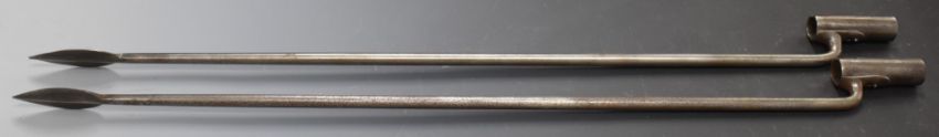 Two replica socket spear bayonets for the 1785 pattern Crespi system Egg breech loader carbine, overall length 76cm. PLEASE NOTE ALL BLADED ITEMS ARE SUBJECT TO OVER 18 CHECK ON COLLECTION OR DELIVERY