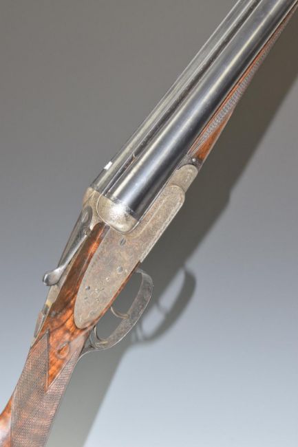 Conyers 12 bore side by side sidelock ejector shotgun with named locks, fine rose and scroll engraving to the locks, underside, trigger guard, top plate, fences and thumb lever, chequered grip and forend, carved teardrop to the wrist, vacant gold cartouche to the underside of the stock, double trigger and 26 inch barrels choked ½ and improved cylinder, overall length 109.5cm, length of pull 36.5cm, serial number 22992. PLEASE NOTE THAT A VALID RELEVANT FIREARMS/SHOTGUN CERTIFICATE IS REQUIRED TO HANDLE/PURCHASE THIS ITEM.