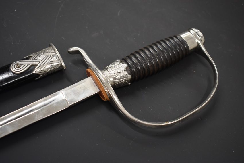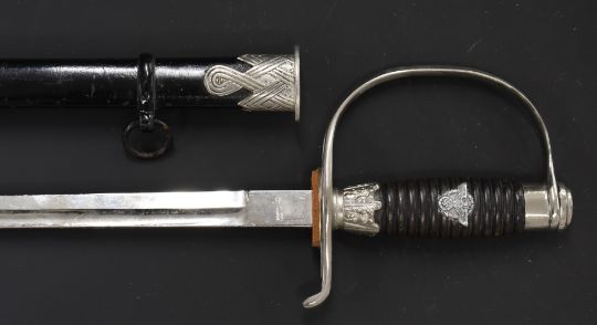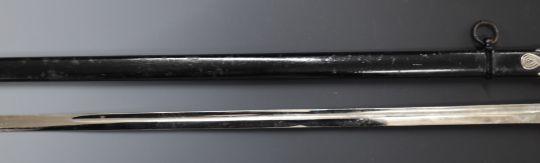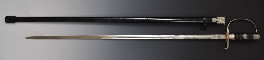 German police NCO's sword with impressed Emil Voos Solingen mark, D shaped chromed hilt and metal scabbard, probably Third Reich era, with 82cm blade and scabbard. PLEASE NOTE ALL BLADED ITEMS ARE SUBJECT TO OVER 18 CHECK ON COLLECTION OR DELIVERY