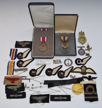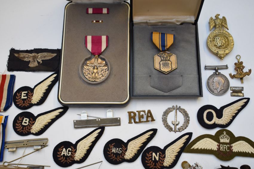 British and American cloth insignia, two American medals, WW1 War medal named to 472343 W Morten Royal Engineers etc