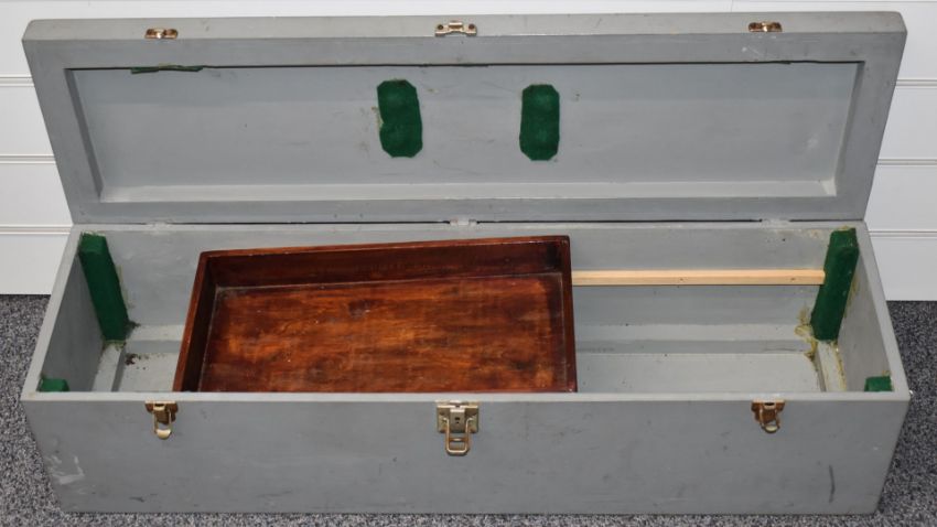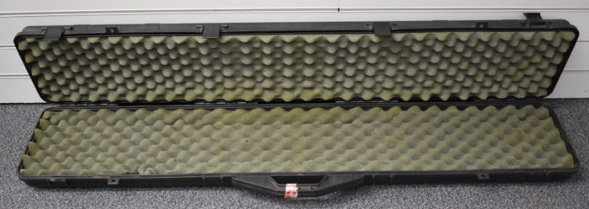 Two military style boxes including a .303 ammunition box, largest 78x26x33cm, and a hard plastic rifle carry case