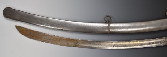 British 1796 pattern Light Cavalry sword with shagreen and wire grip, 82cm curved blade and scabbard. PLEASE NOTE ALL BLADED ITEMS ARE SUBJECT TO OVER 18 CHECK ON COLLECTION OR DELIVERY