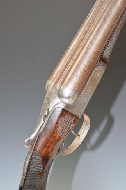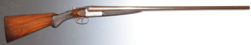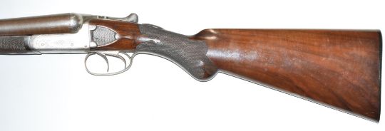 Joseph Birks Lightwood 12 bore side by side shotgun with engraved locks, trigger guard, underside, fences, top plate and thumb lever, chequered semi pistol grip and horn tipped forend, vacant cartouche to the underside of the stock, double trigger and 30 inch Damascus barrels choked ¼ and improved cylinder and engraved 'Birks Lightwood 4 Whittall St & 50 Weaman St Birmingham', overall length 119.5cm, length of pull 38.5cm, NVSN. PLEASE NOTE THAT A VALID RELEVANT FIREARMS/SHOTGUN CERTIFICATE IS REQUIRED TO HANDLE/PURCHASE THIS ITEM.