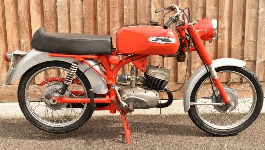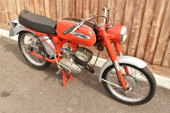 Aermacchi Harley Davidson 125cc Rapido motorbike, restored by the vendor for display including new tyres, recovered seat, restored fuel tank etc, further work will be required to return it to the road but much of the expensive work has been done. Speedometer records 2978 miles, currently not registered, odometer currently records 2978 miles