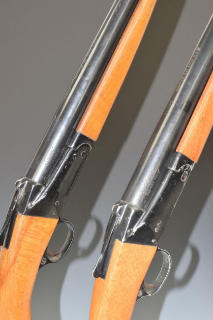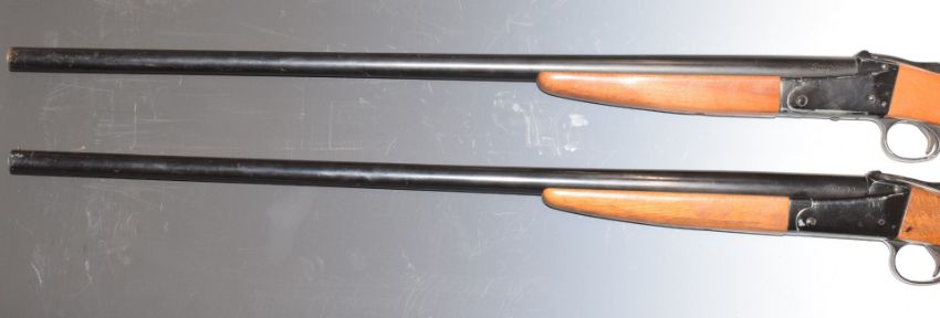 A matched pair of BSA Snipe 12 bore single barrelled shotguns each with semi-pistol grip and 30 inch barrels choked ½, overall lengths 118cm, length of pulls 35cm, serial numbers YD2274 and YO111120. PLEASE NOTE THAT A VALID RELEVANT FIREARMS/SHOTGUN CERTIFICATE IS REQUIRED TO HANDLE/PURCHASE THIS ITEM.