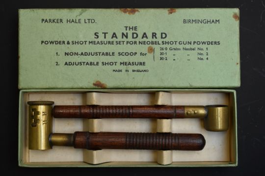 Parker-Hale Ltd The Standard Powder & Shot Measure Set For Nobel Shot Gun Powders, in original box.