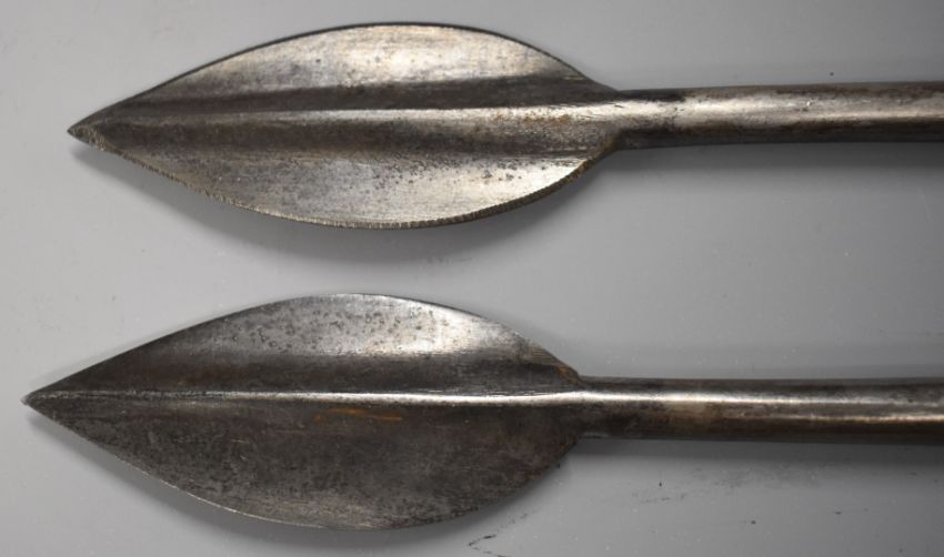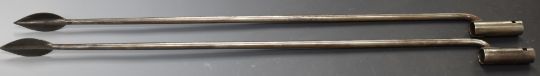 Two replica socket spear bayonets for the 1785 pattern Crespi system Egg breech loader carbine, overall length 76cm. PLEASE NOTE ALL BLADED ITEMS ARE SUBJECT TO OVER 18 CHECK ON COLLECTION OR DELIVERY