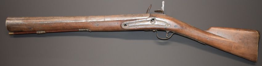 Flintlock blunderbuss with crown over 'GR' cypher and 'Tower' to the lock, brass butt plate, trigger guard and mounts, railed stock, vacant wrist cartouche and 18.5 inch barrel, overall length 82cm.