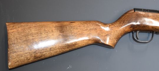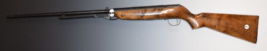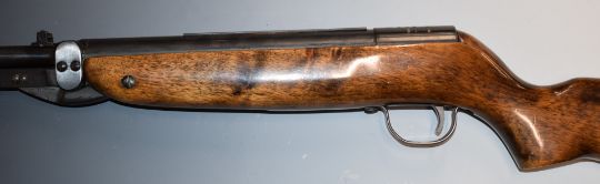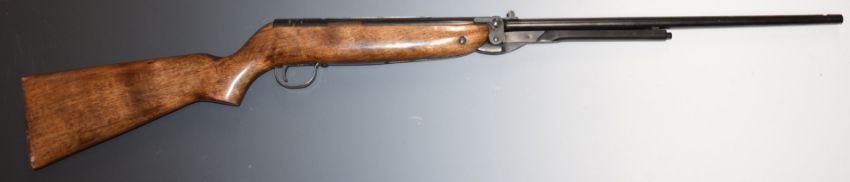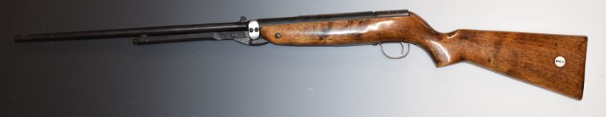 Webley Mark 3 .22 under-lever air rifle with semi-pistol grip, reeded forend and adjustable sights, serial number B2410.