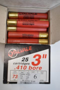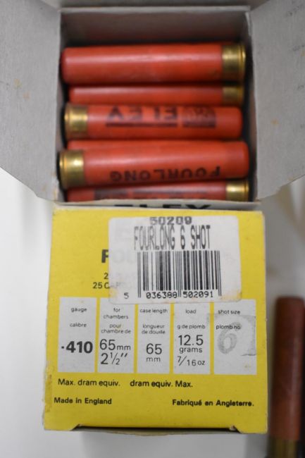 One-hundred-and-fifty Rottweil Special Game 12 bore shotgun cartridges together with 20 Eley Maximum 12 bore cartridges and 100 Eley Furlong and Lyvale .410 cartridges, all in original boxes. PLEASE NOTE THAT A VALID RELEVANT FIREARMS/SHOTGUN CERTIFICATE IS REQUIRED TO HANDLE/PURCHASE THIS ITEM. WE ARE NOT ABLE TO OFFER OUR USUAL POSTAGE SERVICE FOR THIS LOT.