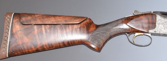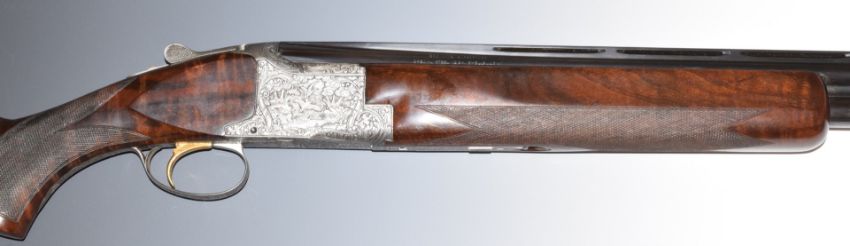Browning B25 Diana 12 bore over and under ejector shotgun with engraved scenes of birds to the locks and underside signed 'LA Campo', scrolling engraving to the trigger guard, top plate and thumb lever, chequered semi-pistol grip and forend, adjustable comb, gilt single trigger, vented top rib and 31.75 inch multi-choke barrels, overall length 124cm, length of pull 36cm, serial number 33723S74, together with two additional Teague chokes and a further comb. PLEASE NOTE THAT A VALID RELEVANT FIREARMS/SHOTGUN CERTIFICATE IS REQUIRED TO HANDLE/PURCHASE THIS ITEM.