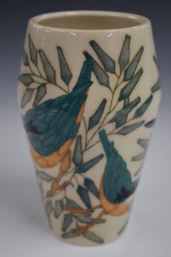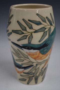Dennis Chinaworks limited edition 5/30 vase decorated in the Kingfishers pattern, various signatures to base including Sally Tuffin, dated 2004, H16.5cm