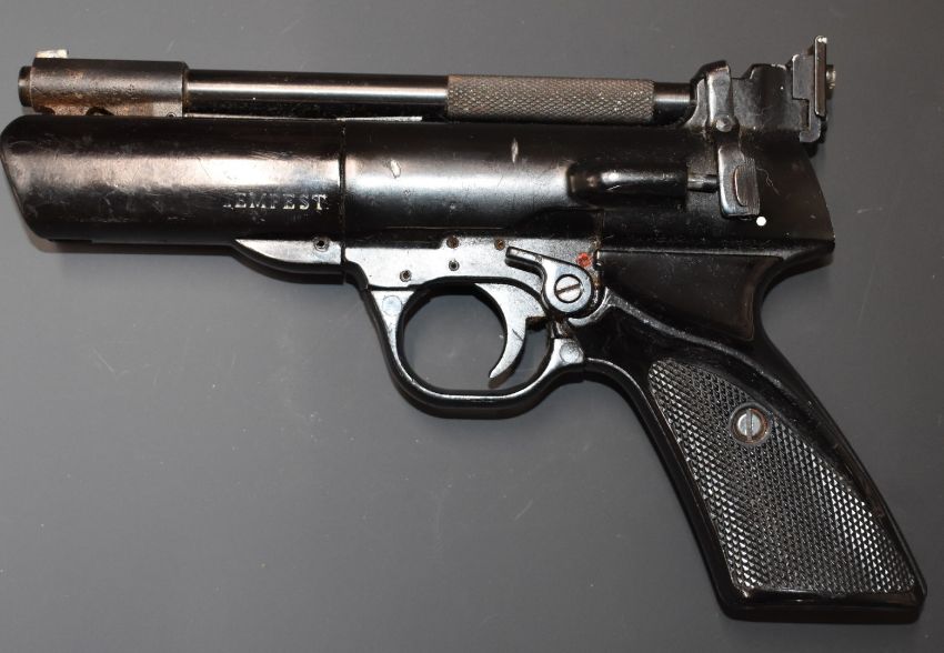 Webley Tempest .22 target air pistol with shaped and chequered grips, NVSN.