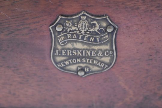 J Erskine & Co Newton Stewart patent mahogany shotgun cartridge loading machine with brass maker's plaque to the front, 37x29x19cm.