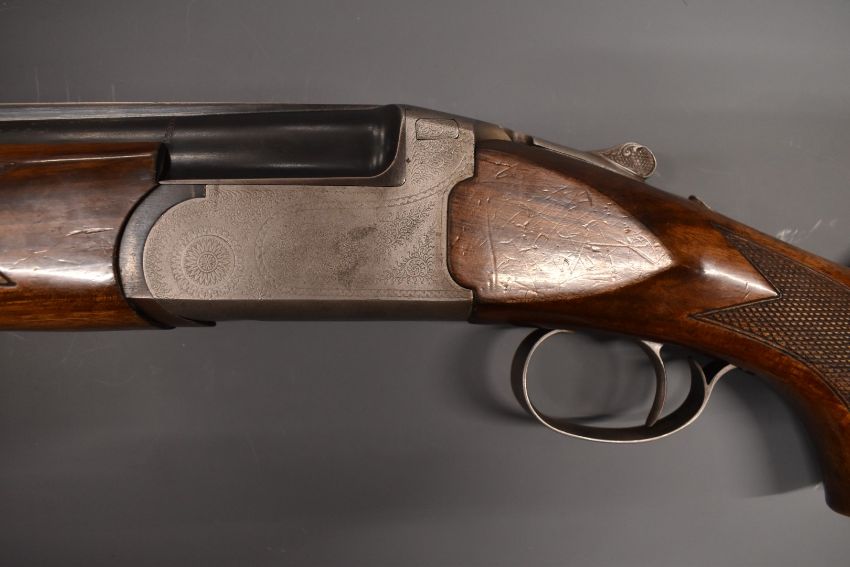 Sportarmi 12 bore over and under ejector shotgun with two sets of barrels, engraved locks, underside, top plate and thumb lever, chequered semi-pistol grip and forend, vented top rib, single trigger, 27.5 inch barrels choked ¾ and full and spare 26 inch barrels, overall length 112.5cm, length of pull 34cm, serial number 24239.  PLEASE NOTE THAT A VALID RELEVANT FIREARMS/SHOTGUN CERTIFICATE IS REQUIRED TO HANDLE/PURCHASE THIS ITEM.