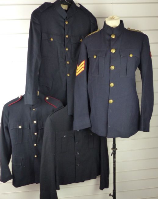 Four No1 dress blues tunics including Royal Artillery example with another with General Service buttons and Sergeant's chevrons etc. Consigned for sale by the Trustees of the Royal Gloucestershire Hussars Trust