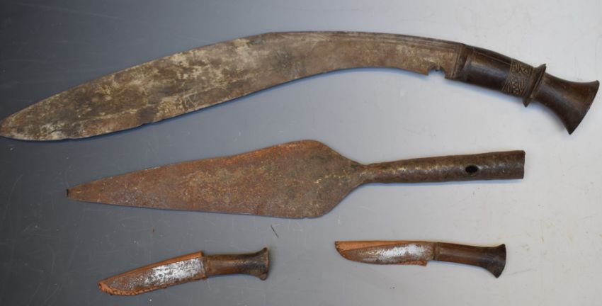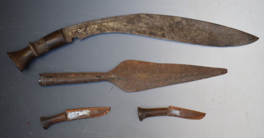 Kukri with 40cm blade together with a karda, a chakmak and a spear head. PLEASE NOTE ALL BLADED ITEMS ARE SUBJECT TO OVER 18 CHECK ON COLLECTION OR DELIVERY
