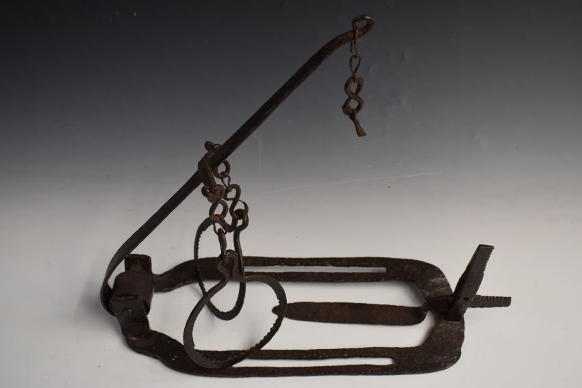 Unusual vintage wrought iron ring rabbit trap, 40x44x7cm.