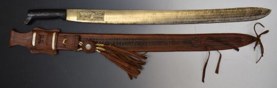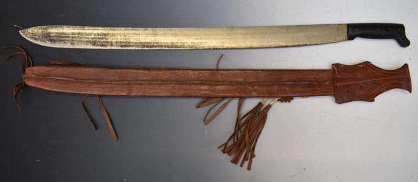 Machete by Sam Collins with 71cm blade and leather sheath. PLEASE NOTE ALL BLADED ITEMS ARE SUBJECT TO OVER 18 CHECK ON COLLECTION OR DELIVERY