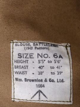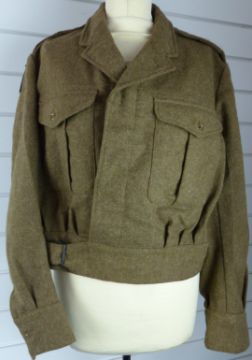 British Army Royal Gloucestershire Hussars Cold War 1949 pattern battledress blouse dated 1964 with cloth regimental and divisional formation badges. Consigned for sale by the Trustees of the Royal Gloucestershire Hussars Trust