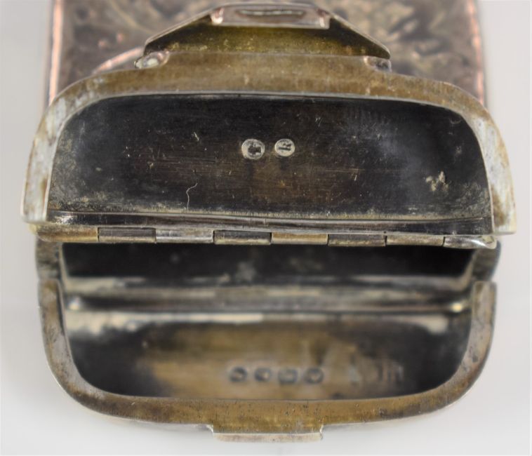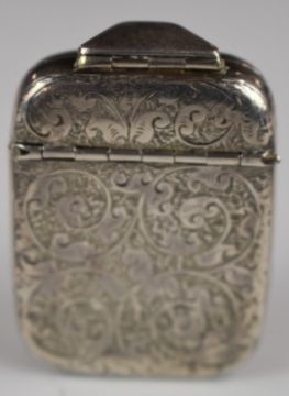 Victorian hallmarked silver vesta case with unusual double hinged opening, Birmingham 1884, maker William Hutchinson, length 5.5cm, weight 27g