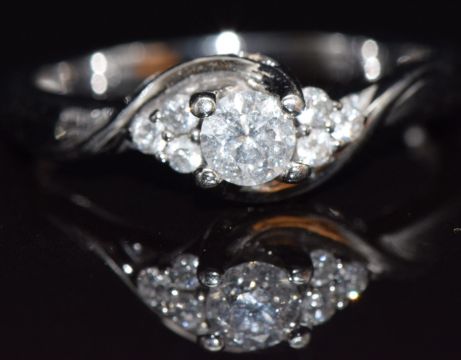 An 18ct white gold ring set with a diamond of approximately 0.3ct with further diamonds to the shoulders, size P, 4g