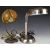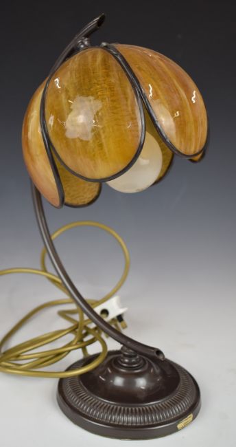Two table lamps, one stainless steel and the other with and orange tulip shade, tallest 37cm