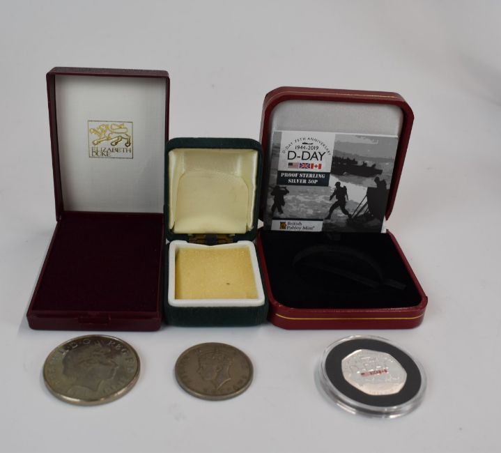 A collection of coin packs and cased examples including a George III cartwheel pair