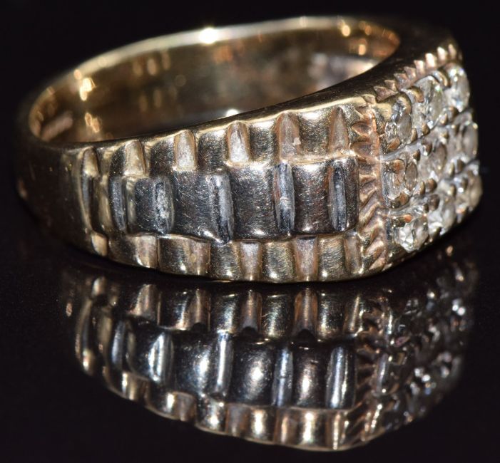A 9ct bi-coloured gold signet ring set with nine diamonds, size Q, 6.5g