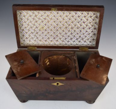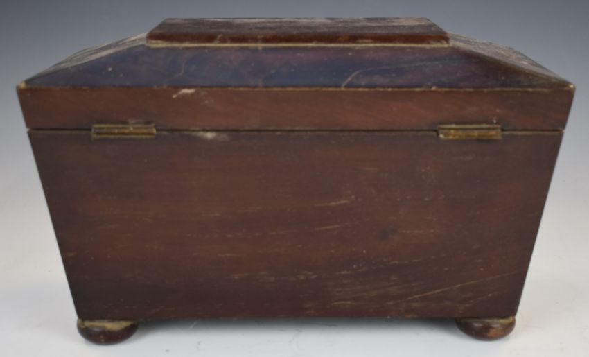 A 19thC mahogany sarcophagus shaped tea caddy, W28 x D17 x H15cm