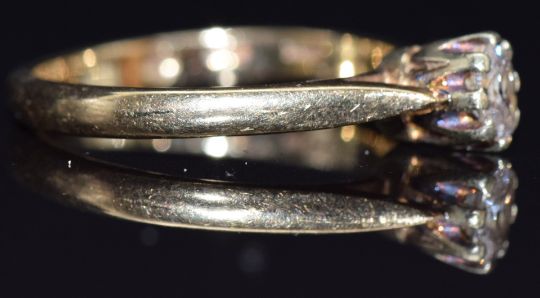 A 9ct gold ring set with an oval cut diamond of approximately 0.2ct, size M, 2.3g