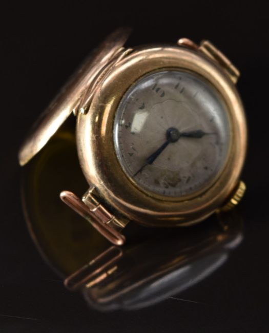 A 9ct gold ladies watch (14.5g) and two Edwardian 9ct gold brooches (2.7g)