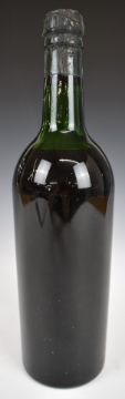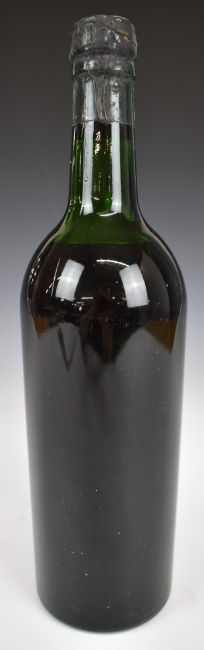 A vintage anonymous bottle of wine or Port with Berry Brothers, London seal and raised letter G to base
