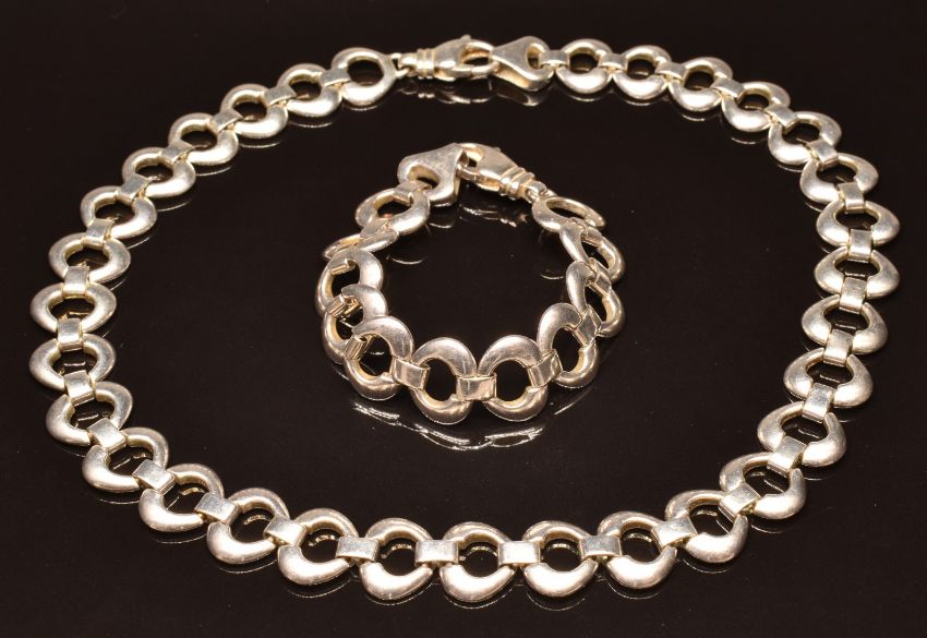A silver necklace and matching bracelet, 93g