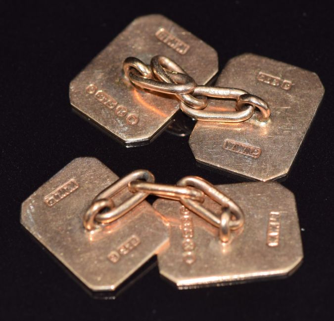 A pair of 9ct gold cufflinks with engine turned decoration, 6.4g
