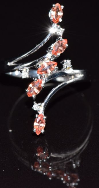 A 9k white gold ring set with Ceylon padparadscha sapphires, size M, 4.6g