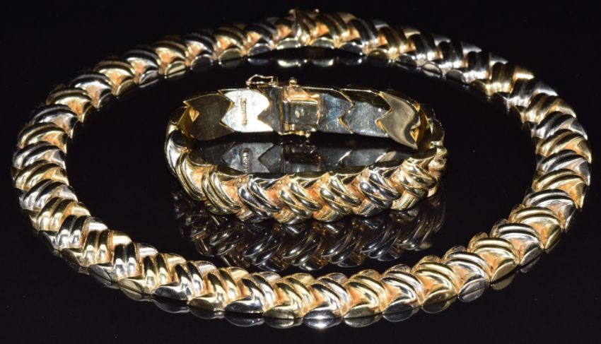 An 18ct gold bi-coloured necklace and matching bracelet by Quadri, 156.4g