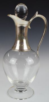 Dartington hallmarked silver mounted claret jug, London 2001, maker J A Campbell, height 30.5cm