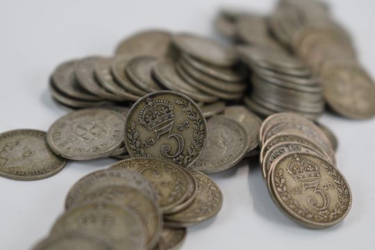 Approximately 810g of pre 1920 and pre 1947 silver threepences