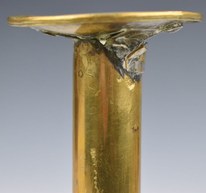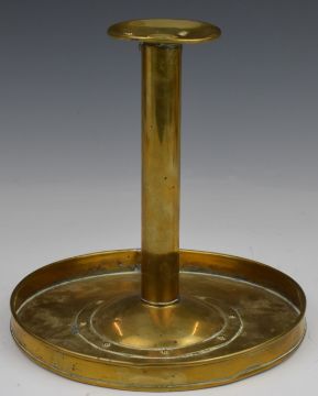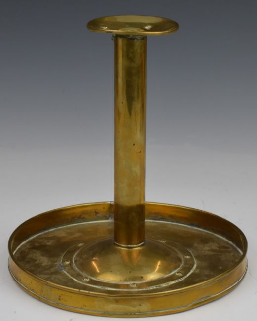 Trench art riveted brass candlestick or chamberstick, H20, diameter 21cm