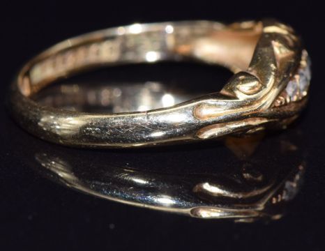 An 18ct gold ring set with five diamonds, Birmingham 1914, size M, 3g