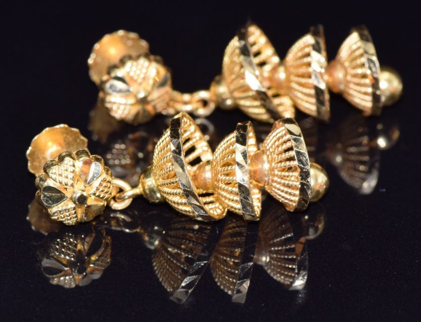 A pair of 22k gold earrings in a pierced tiered design, 7.6g