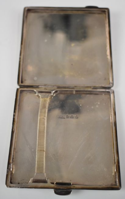 Art Deco hallmarked silver cigarette case with engine turned decoration, Birmingham 1930, maker Deykin & Harrison, width 9cm, weight 113g