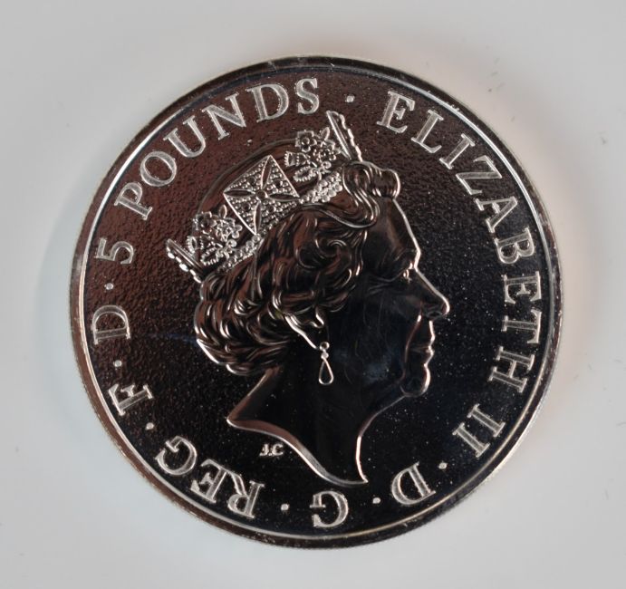Four the Queen's Beasts Two Ounce Fine Silver Coins, all cased with certificates