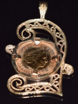 2000 gold half sovereign in 9ct gold filigree pendant mount, 9.2g