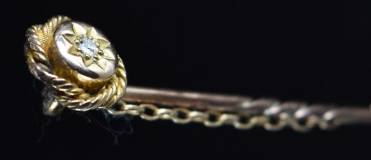 Victorian yellow metal stick pin set with a diamond in a star setting, 2g