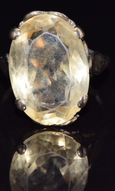 A 9ct gold ring set with an oval cut citrine, size M, 6.2g
